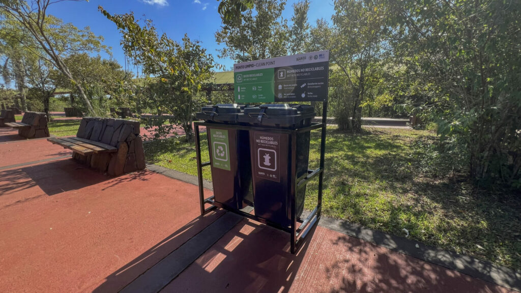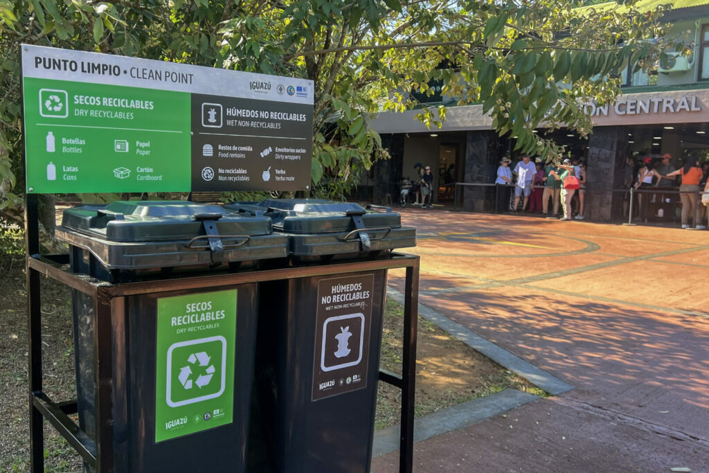 La propuesta comprende todo el ciclo de la gestión de residuos, desde la separación en origen hasta la disposición final. Esta primera etapa se centra en la separación en origen en el Área Cataratas, con puntos limpios que cuentan con cestos diferenciados: verde para residuos secos reciclables como papel, cartón, plástico limpio, vidrio y latas, y negro para residuos húmedos no reciclables como restos orgánicos, pañales o papeles sucios. Cada visitante debe hacerse cargo de sus residuos y trasladarlos hasta los lugares señalizados, para contribuir a la valorización de los materiales reciclables que, correctamente clasificados, podrán integrarse a procesos de economía circular, ser reinsertados en el ciclo productivo y, de esta manera, reducir el impacto ambiental.